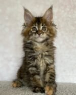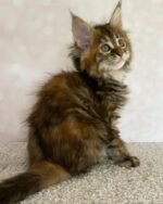 Blizzard is a curious 12-week-old Maine Coon with a gentle, affectionate personality and a luxuriously fluffy coat. She’s current on vaccines and comes with a health certificate for peace of mind. Litter-box trained and well-socialized, Blizzard thrives in warm family environments and enjoys the company of children and fellow pets. Registration papers are available to verify lineage, and she’s ready to bring warmth, playfulness, and companionship to a loving home.